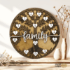 Build your family tree today! Each heart is engraved with your loved ones’ names, creating a heartfelt keepsake that celebrates what matters most – family. These signs are available in 11″ or 16″ rounds and are laser cut, hand painted, hand stained and ready to hang.